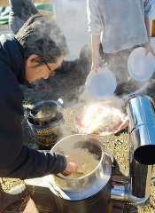 作業の後は、10月に収穫した新米を羽釜で炊いていただきました。おこげも熟し柿も美味しくいただきました。