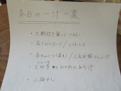 生徒達が以前作った味噌で味噌汁を。具材の大地芋(てらいも)が顔位のサイズで大きくてビックリ!皮を剥いて切ります。わかめも入れました。高きびのローフも焼いて、できあがり(添付3枚目)。