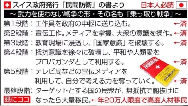 愚民化・洗脳・無関心・愛国心や誇りを失くし・伝統文化の破壊・精神的に弱く・自己中心・諦め・金優先、99%マスクで「飼いならされた羊」となりました。
